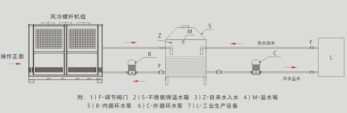 6、水冷系列需要配置冷卻水塔及冷卻水泵,冷水機(jī)放置在室內(nèi),噪音比較低,制冷效果更好,應(yīng)用于通風(fēng)散熱不是很好的環(huán)境;